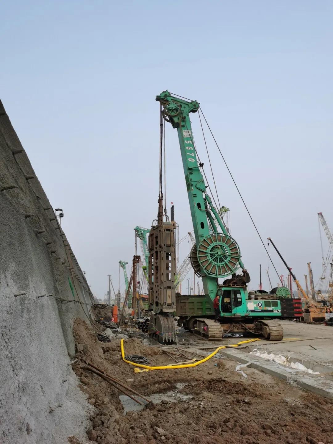 ? ? ?? 該站點(diǎn)鐵路核心區(qū)最大埋深約 32.9米,西咽喉最深約45米,地下總建筑面積約 128萬(wàn)平方米,出土量將達(dá)到 1300萬(wàn)立方米,相當(dāng)于七個(gè)北京昆明湖那么大。開(kāi)工至今,20臺(tái)金泰SG系列液壓連續(xù)墻抓斗均在項(xiàng)目中表現(xiàn)突出,已然成為該項(xiàng)目地連墻施工主要輸出設(shè)備,同時(shí),45m深,1.2m厚的槽單爪平均用時(shí)8小時(shí),也取得成槽機(jī)綜合施工第一的好成績(jī)。