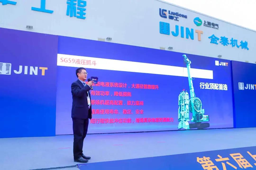 ? ? ? ? 隨著國家基礎(chǔ)建設(shè)的縱深發(fā)展,為解決深大地下空間開發(fā)面臨的深層地下水控制問題,2014金泰成功開發(fā)了SC系列雙輪攪拌鉆機,成為解決復(fù)雜地質(zhì)和城市敏感環(huán)境中超深等厚水泥土攪拌墻的關(guān)鍵技術(shù),由此在2017年榮獲“國家科技進步二等獎,”成為又一個推動國家基礎(chǔ)施工裝備升級的典范。本屆展示會金泰發(fā)布了三款抓斗新產(chǎn)品:極具性價比優(yōu)勢D系列代表機型SG50D、體現(xiàn)專業(yè)與智慧的中型王牌產(chǎn)品SG59、被譽為“能效之王”超重型抓斗SG90。