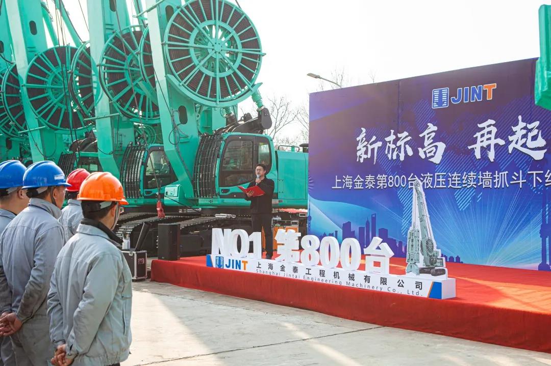 ? ? ? ?1月21日上午,微雨初歇、春意漸濃。以“新標(biāo)高,再啟航”為主題的上海金泰第800臺液壓連續(xù)墻抓斗下線儀式在金泰本部舉辦。根據(jù)疫情防控要求,下線儀式未邀請外部用戶,也沒有組織大規(guī)模的聚集活動,由公司總經(jīng)理黎隸萬、黨委書記陳雪英、公司高級顧問林堅、公司董事、副總經(jīng)理兼營銷公司總經(jīng)理徐峰、紀(jì)委書記工會主席陳月萍等公司領(lǐng)導(dǎo)帶領(lǐng)各條線負(fù)責(zé)人以及部分一線員工在金泰產(chǎn)品展示廣場共同見證了金泰第800臺抓斗下線及交付過程,整場儀式既簡約又隆重。