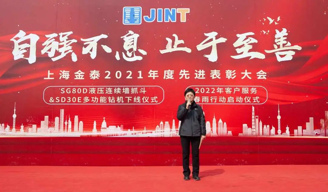 ? ? ? ?“下線!”“出發(fā)!”“勵(lì)志!”? ?3月2日,上海金泰SG80D液壓連續(xù)墻抓斗與SD30E多功能鉆機(jī)下線、2022年客戶服務(wù)春雨行動(dòng)啟動(dòng)儀式暨2021年度公司總結(jié)表彰大會(huì)隆重舉行。