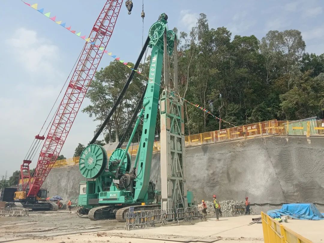 ? ? ? ? 不知道大家是否還記得,2019年的廈漳泉城鐵R1線地連墻項(xiàng)目。金泰SX40A雙輪銑在單軸抗壓最高強(qiáng)度達(dá)到210Mpa的微風(fēng)化花崗巖面前,多個(gè)品牌雙輪銑因銑削效率低黯然淪為“實(shí)習(xí)生”,在旁圍觀。金泰SX40A則憑借12T.M大扭矩與更加合理的擺刀布局為其在克巖路上披荊斬棘,成為當(dāng)之無愧的“克巖專家”。最終,在金泰多臺地連墻設(shè)備協(xié)調(diào)施工下,工程超預(yù)期完成,并獲項(xiàng)目部一致叫好稱“絕”。