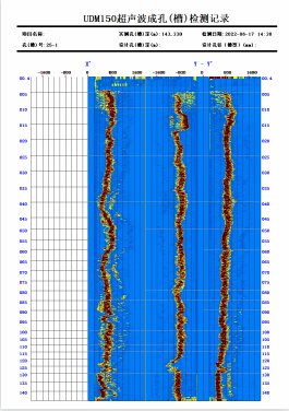 金泰雙輪銑成槽時(shí),采取超聲波測斜儀進(jìn)行檢測,施工過程中對孔斜進(jìn)行把控,同時(shí)觀察槽孔孔壁是否穩(wěn)定。