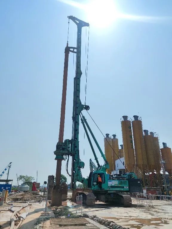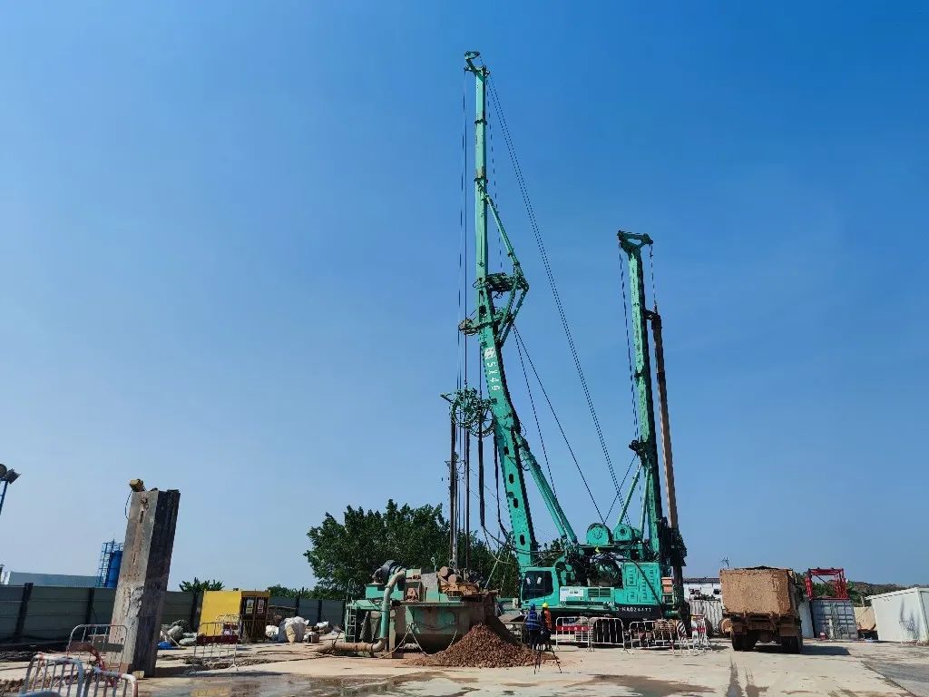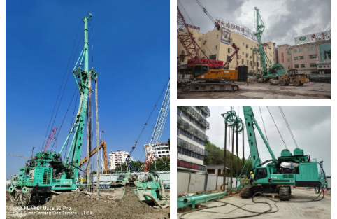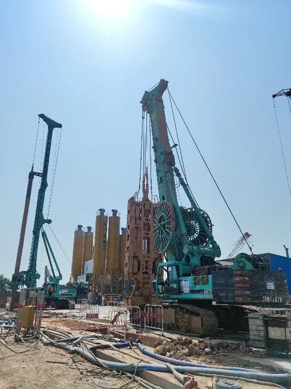 ? ? ? ?為了提高T3航站樓擴(kuò)建項(xiàng)目地連墻施工的進(jìn)度與精度,現(xiàn)場(chǎng)均采用“抓鉆銑”組合工藝進(jìn)行施工。該施工工藝久經(jīng)市場(chǎng)考驗(yàn),成墻效率可提升40%以上。另外,“成墻快不快的關(guān)鍵,還得看旋挖引的直不直”。白云機(jī)場(chǎng)T3航站樓擴(kuò)建項(xiàng)目對(duì)于垂直精度有著嚴(yán)苛的驗(yàn)收標(biāo)準(zhǔn),現(xiàn)有多臺(tái)旋挖設(shè)備引孔未能符合要求,金泰SH38旋挖鉆機(jī)憑借自身深厚的技術(shù)底蘊(yùn),無(wú)論在硬地層和超深引孔均無(wú)一偏孔,施工順暢,得到了現(xiàn)場(chǎng)項(xiàng)目部的一致認(rèn)可。