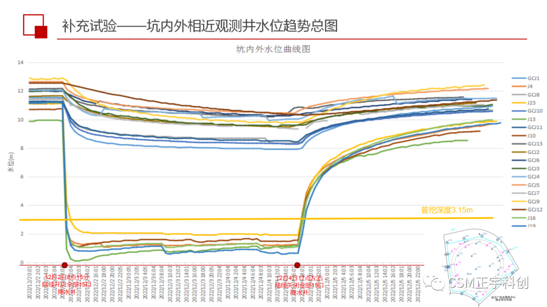 ? ? 武漢市勘察設(shè)計(jì)有限公司編制的坑內(nèi)外抽水連通試驗(yàn)報(bào)告內(nèi)容較全面,監(jiān)測(cè)數(shù)據(jù)基本可信,經(jīng)完善后可指導(dǎo)后續(xù)工作。